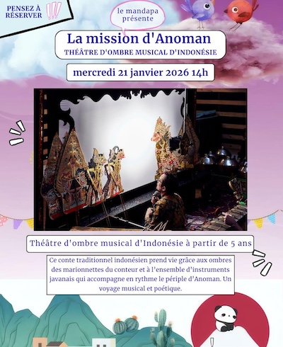 Ce conte traditionnel indonésien prend vie grâce aux ombres des marionnettes du conteur et à l’ensemble d’instruments javanais qui accompagne en rythme le périple d’Anoman. Un voyage musical et poétique.